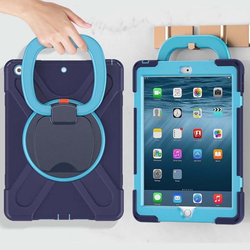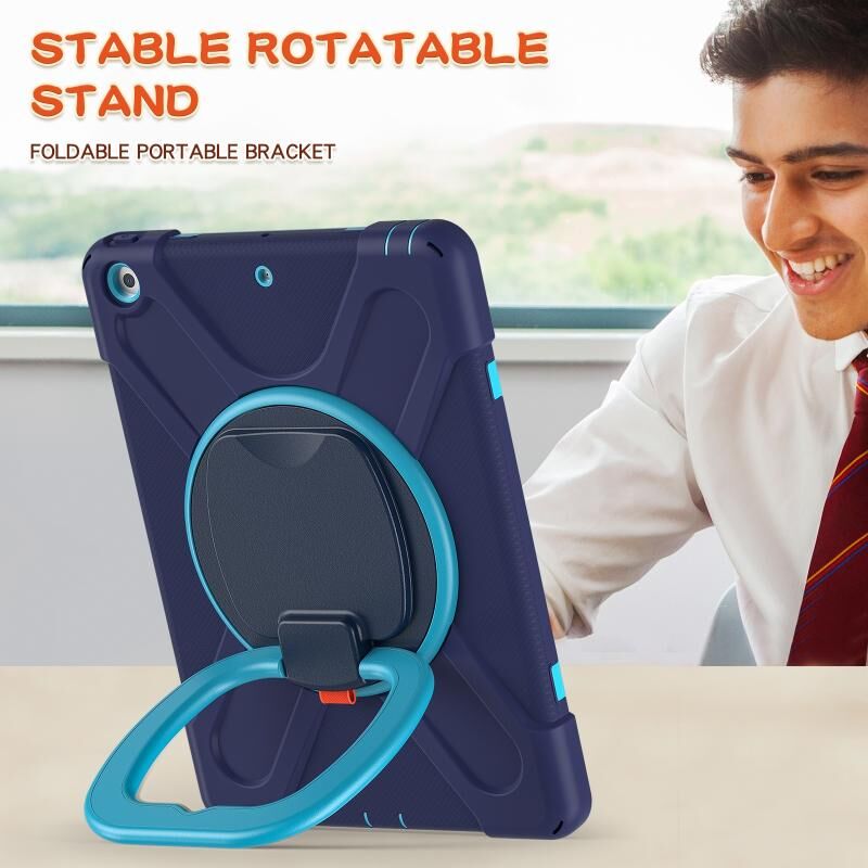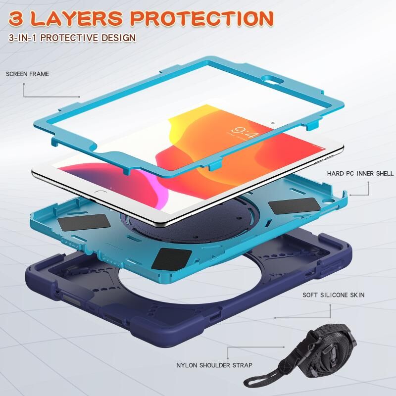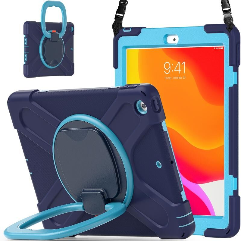 For Apple iPad 10.2 2021 / 2020 / 2019 Contrast Color Silicone + PC Protective Case with Holder & Shoulder Strap(Navy Blue + Blue)