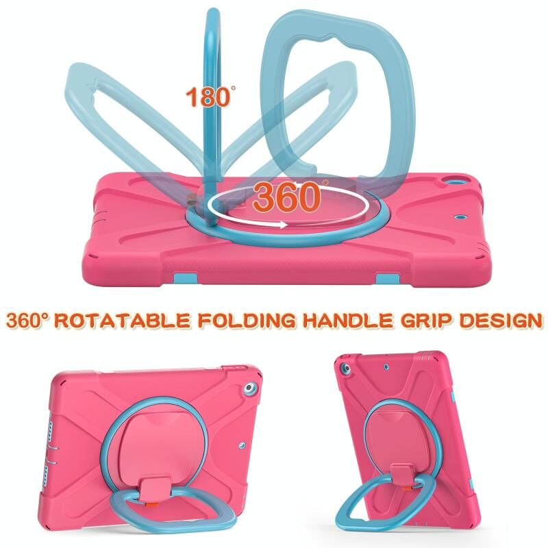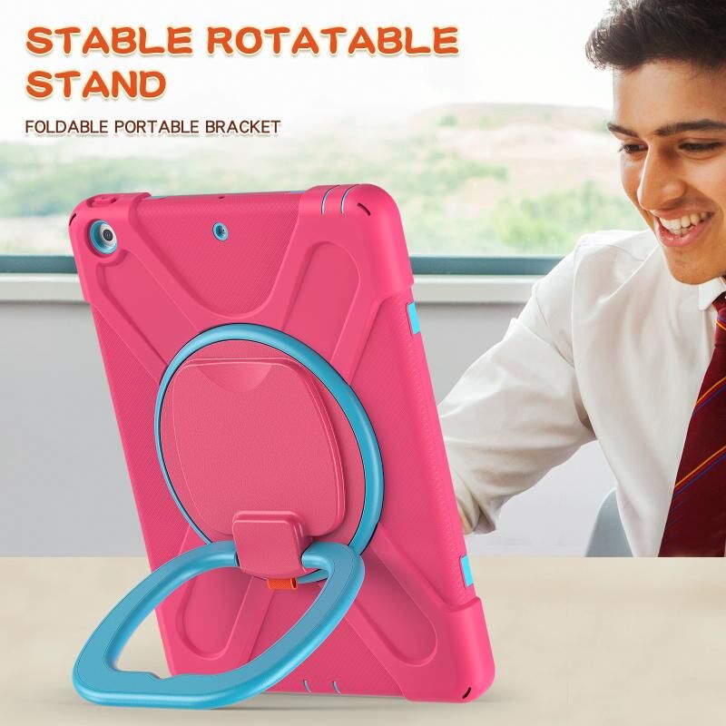 For Apple iPad 10.2 2021 / 2020 / 2019 Contrast Color Silicone + PC Protective Case with Holder & Shoulder Strap(Rose red+Blue)