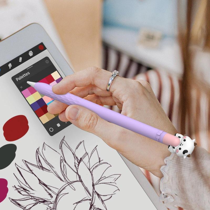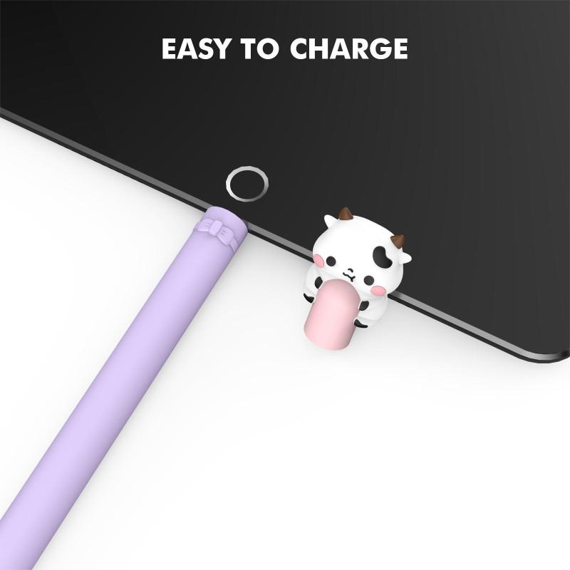 For Apple Pencil 1 LC129-1 Cartoon Anti-roll Silicone Protective Stylus Pen Case(Pink Purple Cow)