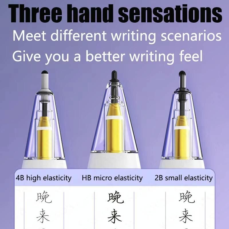 3. Three levels of elasticity optional - 4B large elasticity: the first choice for professional painting, deeply simulates the pressure of real brushes; 2B small elasticity: the golden partner for note writing, smooth and continuous touch; HB micro elasticity: small elasticity, weak damping