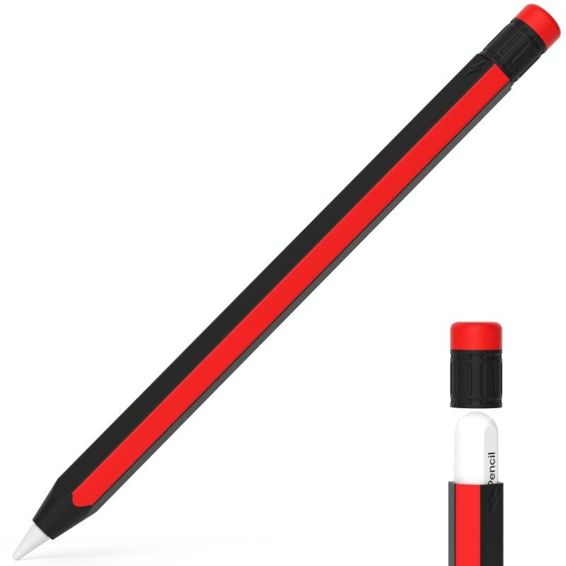 Θήκη σιλικόνης προστασίας σε στυλ μολυβιού για Apple Pencil 2 / Pencil Pro (Μαύρο Κόκκινο)