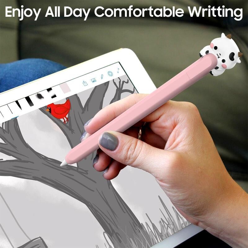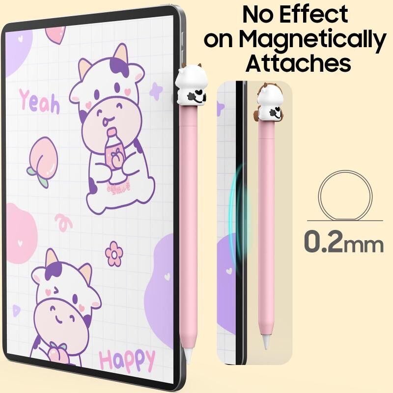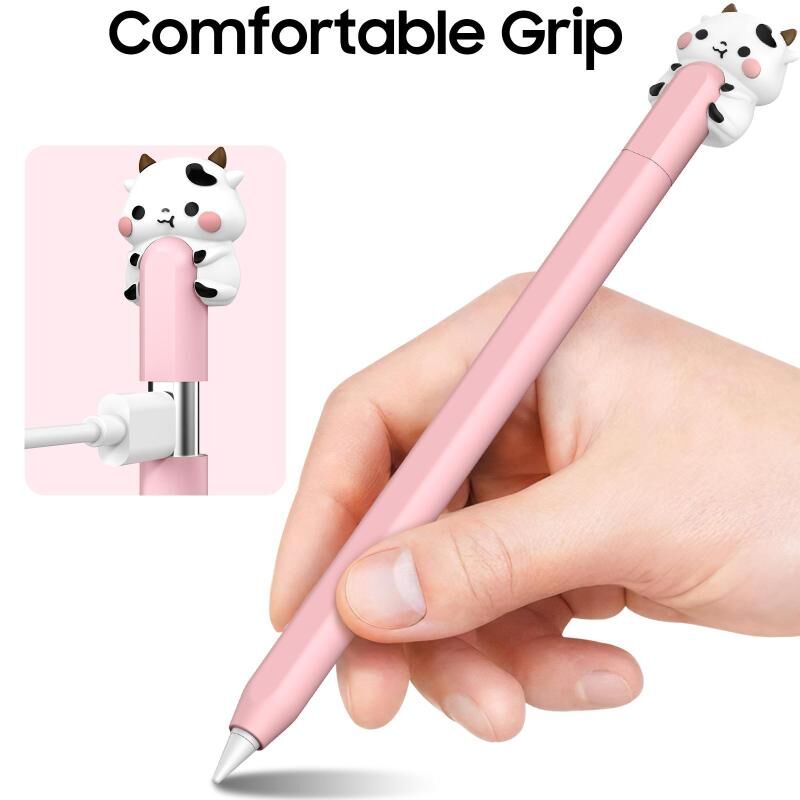 For Apple Pencil USB-C LC129-3 Cartoon Anti-roll Silicone Protective Stylus Pen Case(Pink Cow)