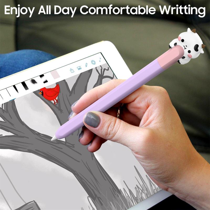 For Apple Pencil USB-C LC129-3 Cartoon Anti-roll Silicone Protective Stylus Pen Case(Pink Purple Cow)