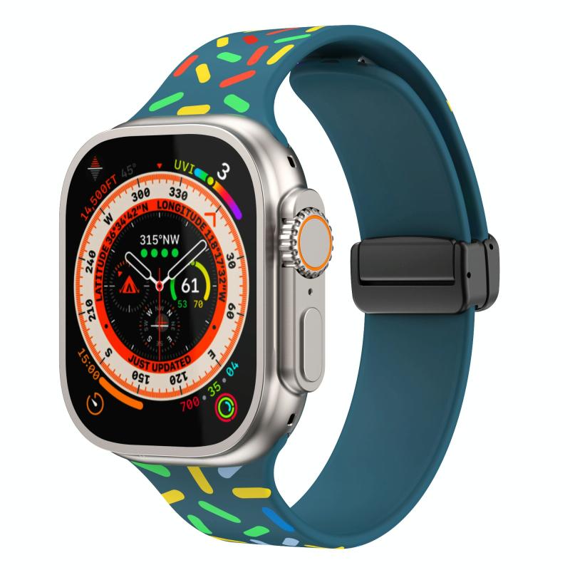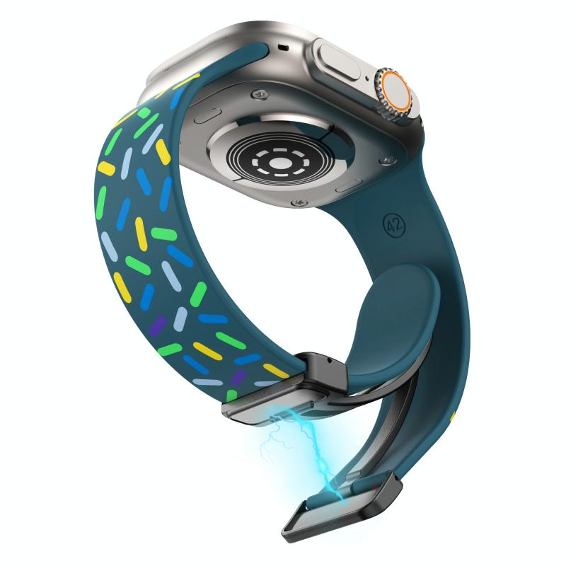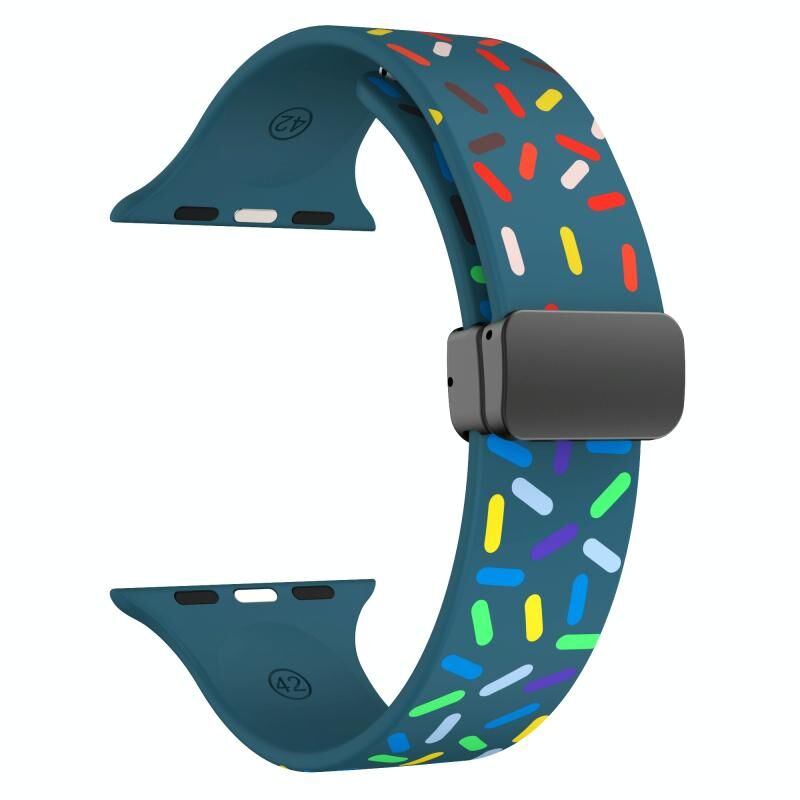 For Apple Watch 2 42mm Rainbow Dots Silicone Magnetic Black Buckle Watch Band(Blue)