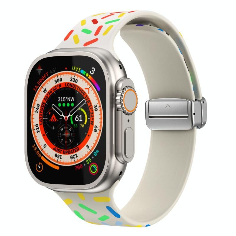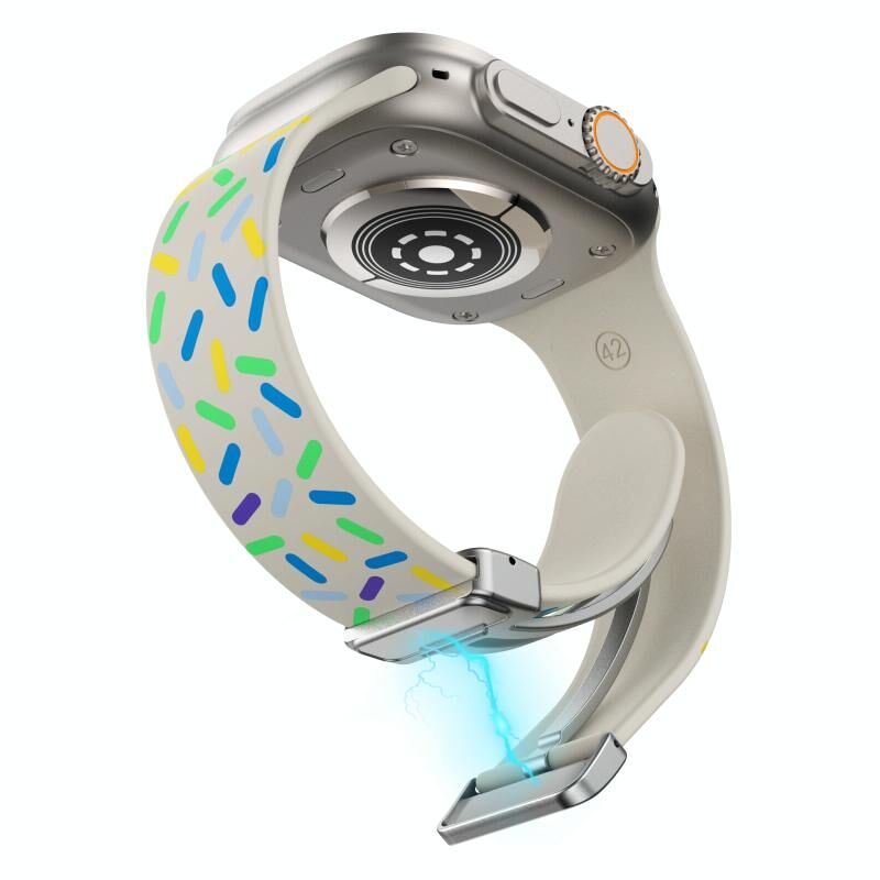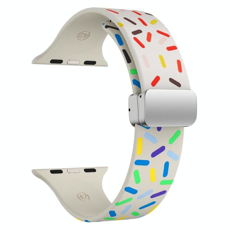 Για Apple Watch 2 42mm Λουράκι ρολογιού σιλικόνης με μαγνητικό κούμπωμα Rainbow Dots (Χρώμα Starlight)