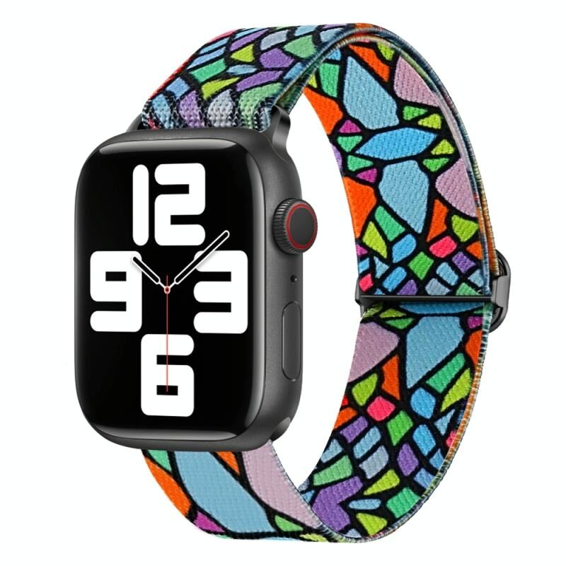 For Apple Watch 3 38mm Painted Pattern Nylon Replacement Watch Band(Geometric Rainbow)