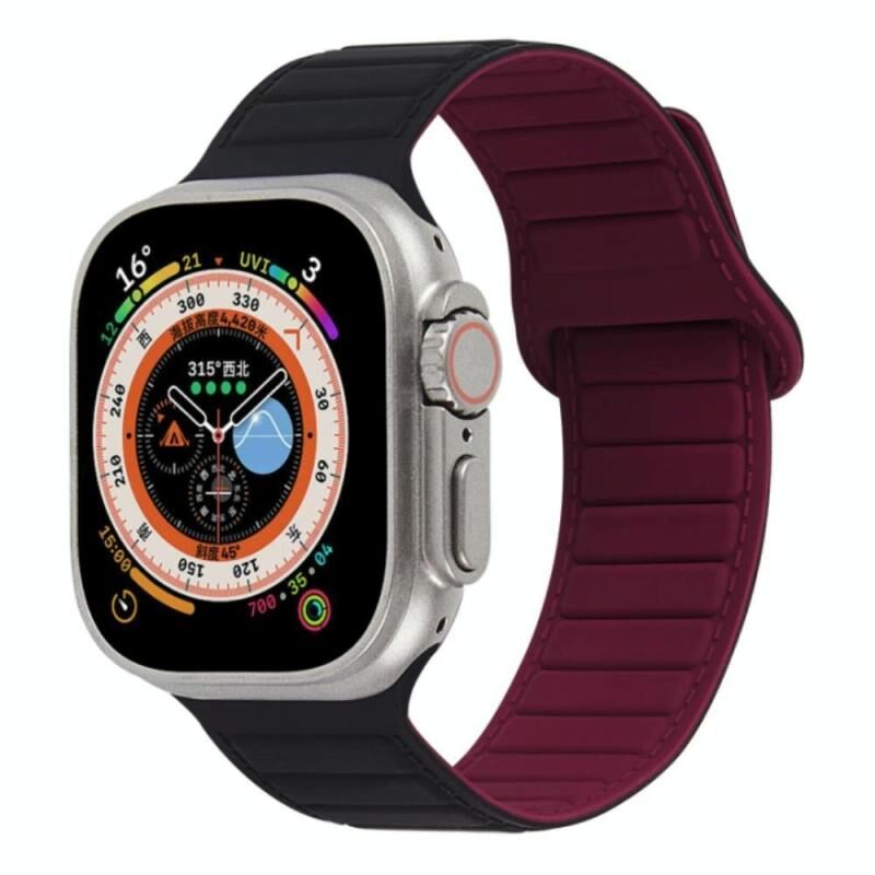 Για Apple Watch 3 42mm Λουρί Μαγνητικό Σιλικόνης (Μαύρο Κρασοκόκκινο)