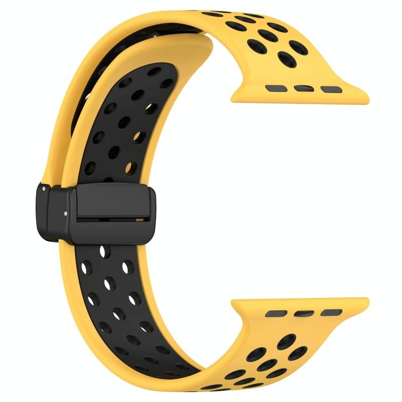 Για Apple Watch 3 42mm Μαγνητικό Κούμπωμα Σιλικόνης Λουράκι Ρολογιού (Κίτρινο Μαύρο)