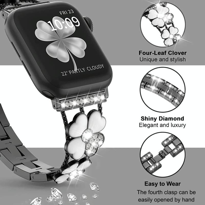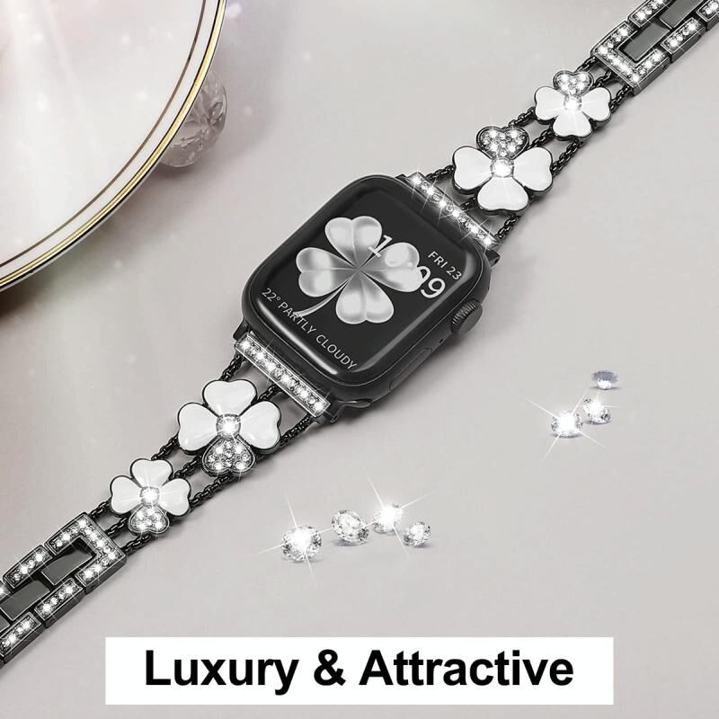 Για Apple Watch 3 42mm Μεταλλικό Μπρασελέ Πετάλου Διαμάντι (Μαύρο+Λευκό)