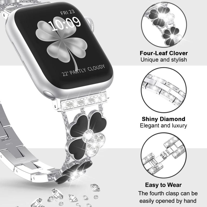 Για Apple Watch 3 42mm Μεταλλικό Μπρασελέ Πετάλου Διαμάντι (Μαύρο+Λευκό)