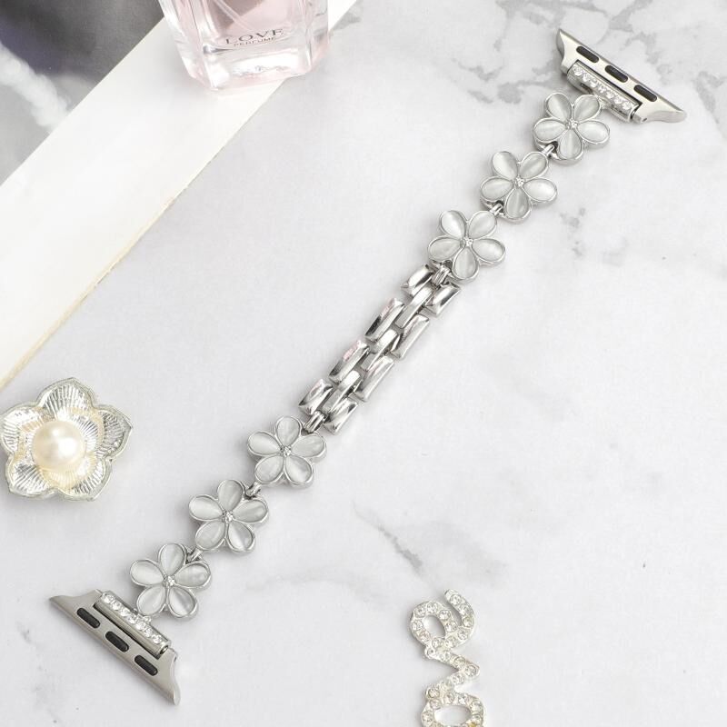 Για Apple Watch 38mm, αλυσίδα ρολογιού από κράμα ψευδαργύρου με λουλούδι 5 πετάλων (Ασημί)