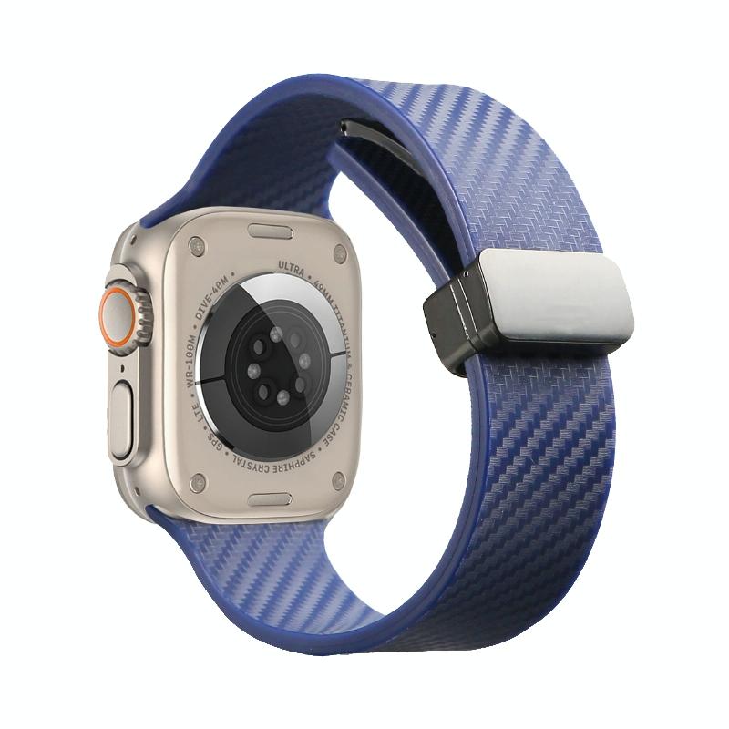 Για Apple Watch 38mm Μαγνητικό Κούμπωμα Σιλικόνης με μοτίβο ανθρακονημάτων (Βασιλικό μπλε)