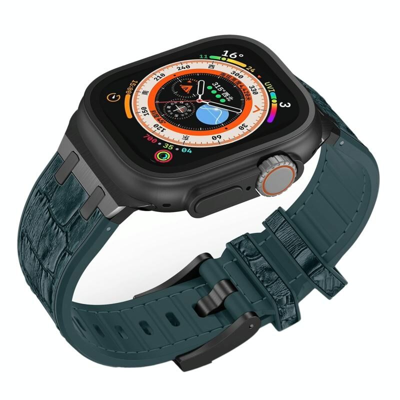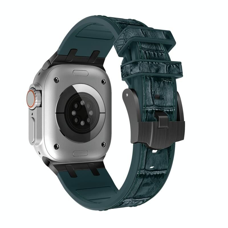 Για Apple Watch 38mm Λουρί Σιλικόνης Υγρού με Υφή Κροκόδειλου (Μαύρο Βαθύ Πράσινο)