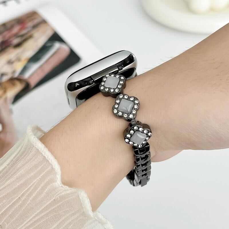 1. Rhinestones four-leaf clover chain and metal combination design strap