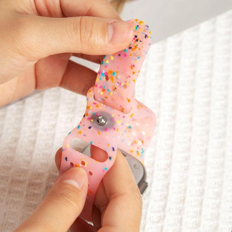 For Apple Watch 38mm Jelly Color Dots Liquid Silicone Watch Band(Pink)