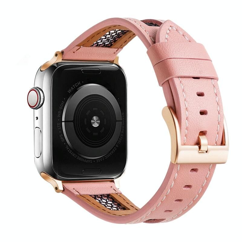 Για Apple Watch 38mm Mesh Calfskin Γνήσιο Δερμάτινο Λουράκι (ρόζ)