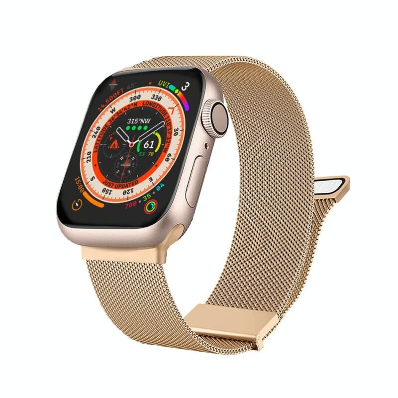 Για Apple Watch 38mm Μιλανέζικο Διπλό Μαγνητικό Διχτυωτό Βραχιόλι από Ατσάλι (Ροζ χρυσός)