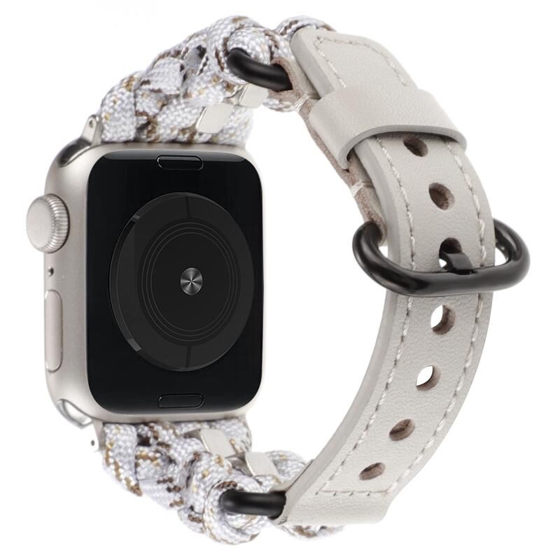 Για Apple Watch 38mm Λουρί Παρακορδίου με Γνήσιο Δέρμα (Λευκό Χακί)