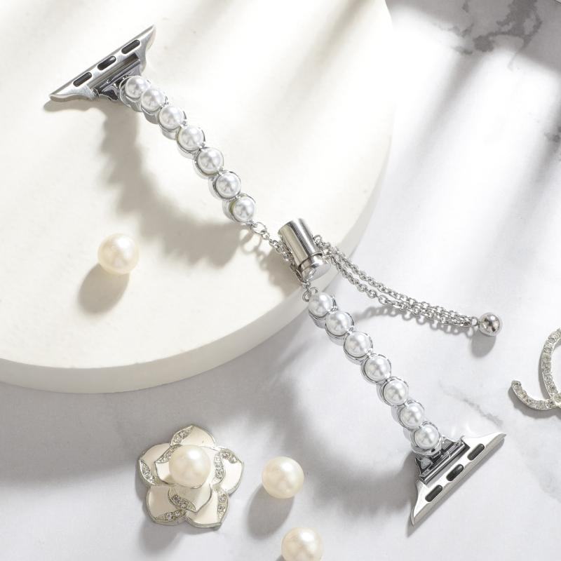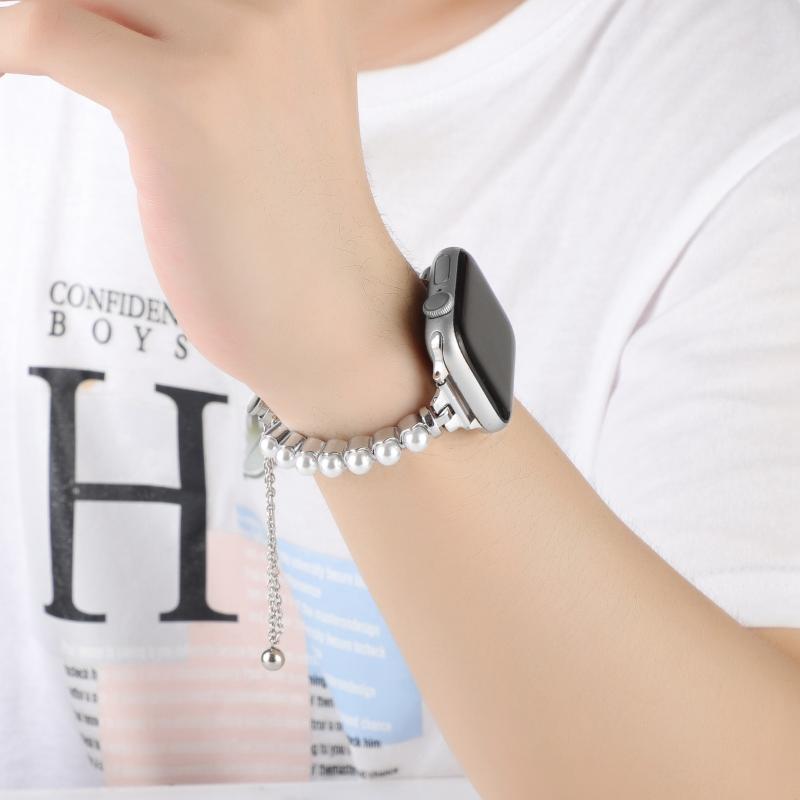 Για Apple Watch 38mm Πέρλα Βραχιόλι Μεταλλικό Λουράκι Ρολογιού (Ασημί)