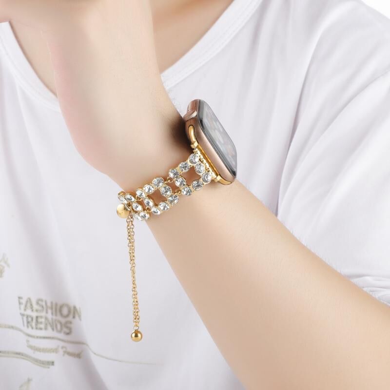 For Apple Watch 38mm Rhinestone Metal Bracelet Watch Band(Gold)