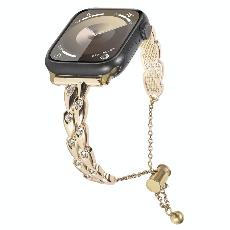 For Apple Watch 38mm Rhinestone Peacock Metal Bracelet Watch Band(Gold)