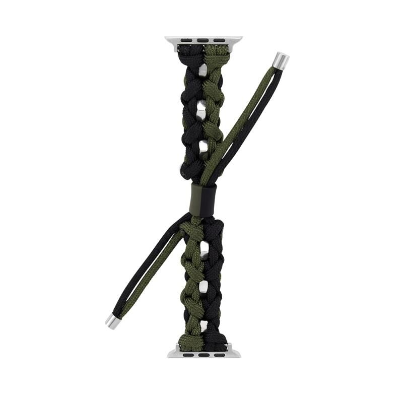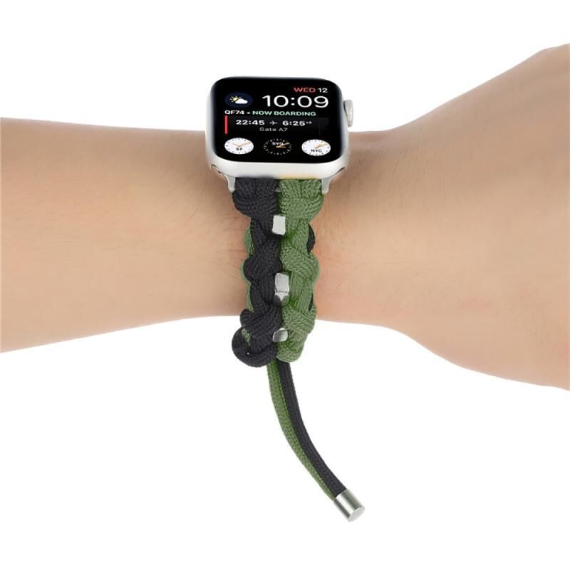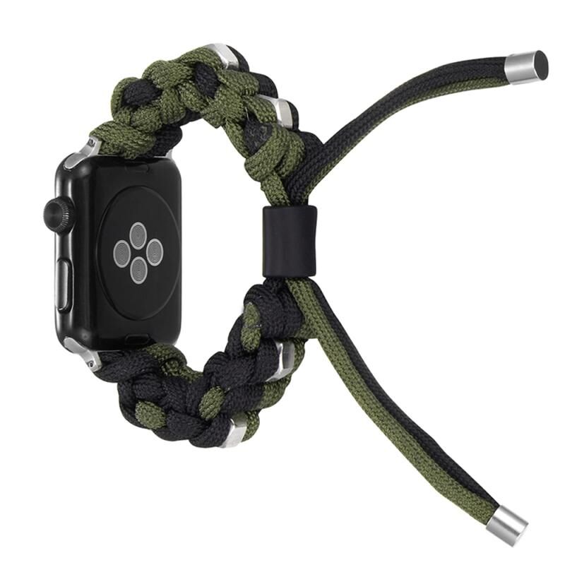 For Apple Watch 38mm Screw Nut Dual-Color Braided Paracord Watch Band(Black Green)