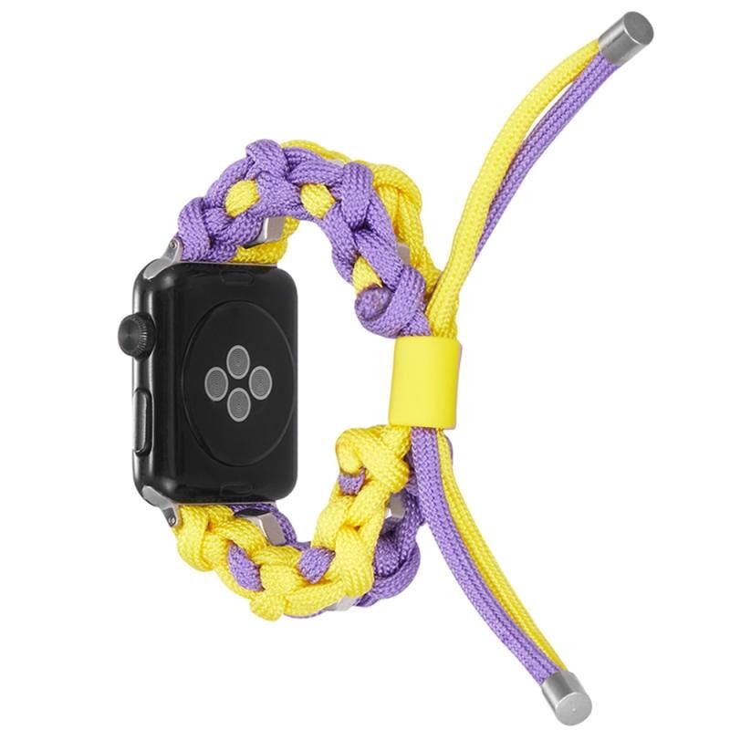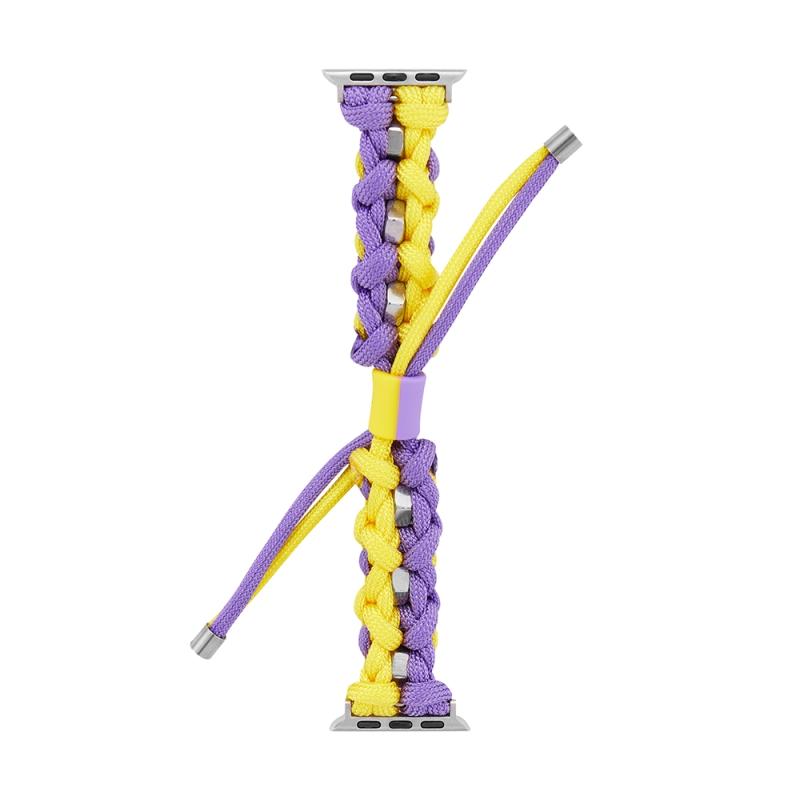 For Apple Watch 38mm Screw Nut Dual-Color Braided Paracord Watch Band(Purple Yellow)