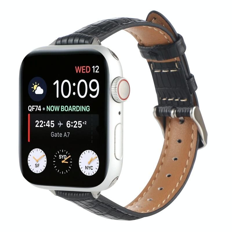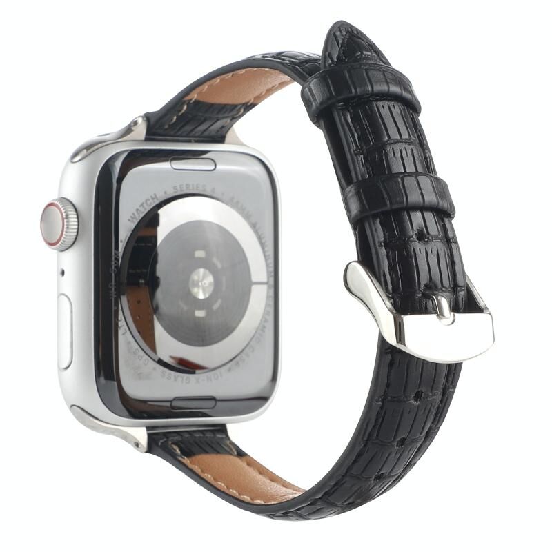 Για Apple Watch 38mm Λεπτό Δερμάτινο Λουράκι Κροκόδειλου (Μαύρο)