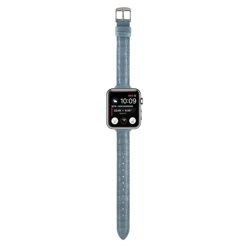 For Apple Watch 38mm Slim Crocodile Leather Watch Band(Light Blue)