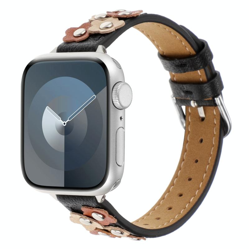 For Apple Watch 38mm Stitched Flower Leather Watch Band(Black)