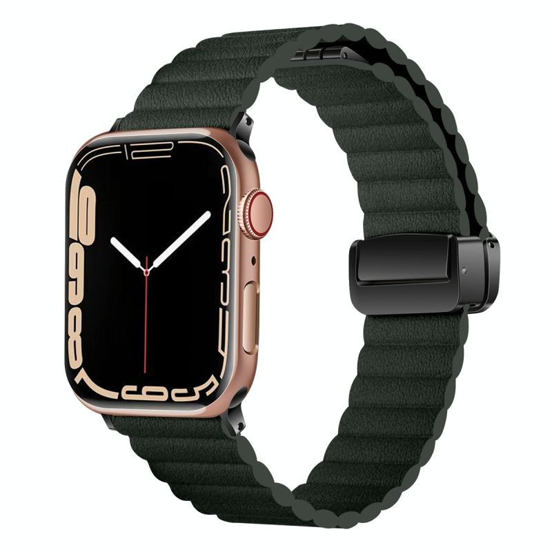 Για Apple Watch 38mm Μαγνητικό Κούμπωμα Δίπλωσης με Εφέ Νερού, Στυλ: Τολμηρή Έκδοση (Σκούρο πράσινο)