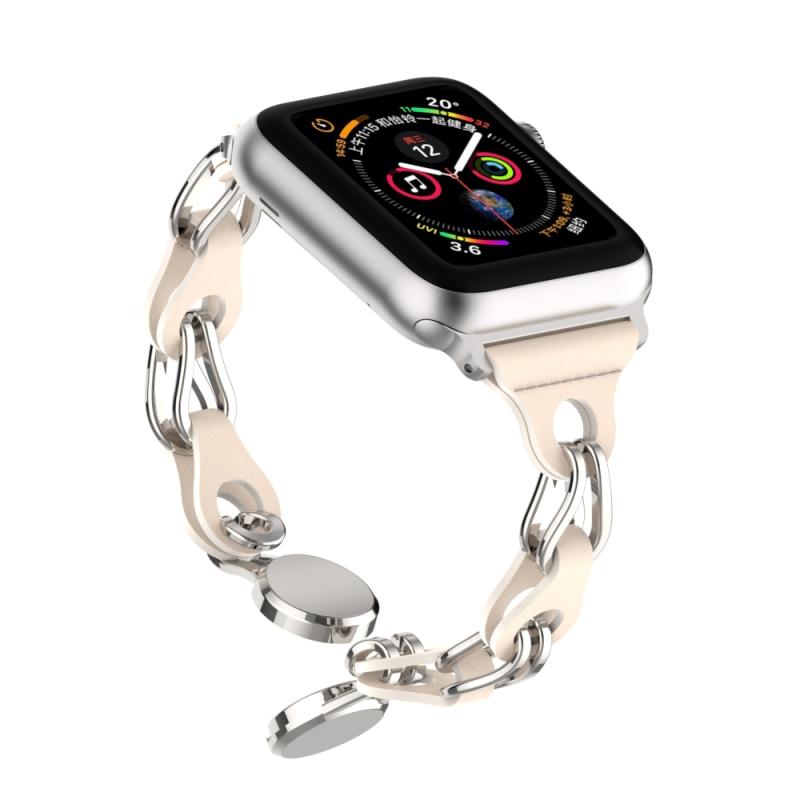 Για Apple Watch 4 40mm Κενό Δερμάτινο Κολιέ Μαγνητικό Κούμπωμα για Λουράκι Ρολογιού (Χρώμα Starlight)