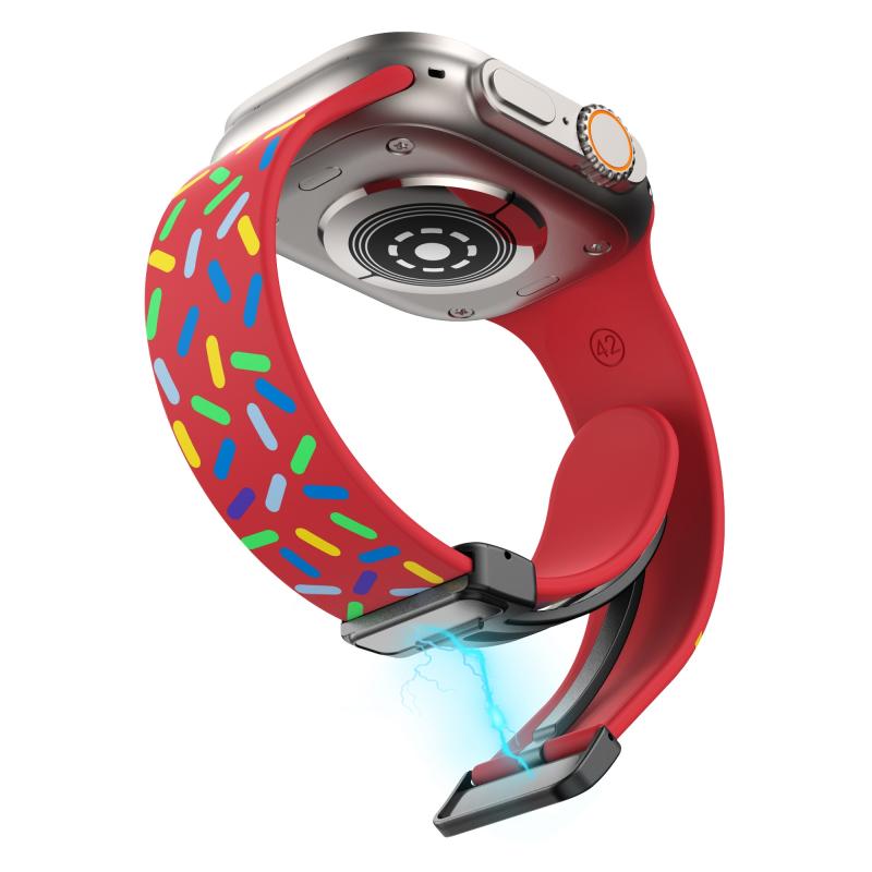 For Apple Watch 4 40mm Rainbow Dots Silicone Magnetic Black Buckle Watch Band(Red)