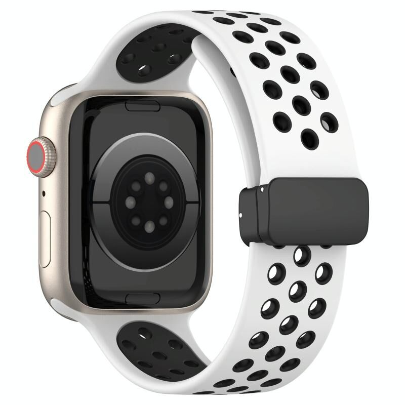 Για Apple Watch 4 44mm Μαγνητικό Κούμπωμα Σιλικόνης Λουράκι Ρολογιού (Λευκό Μαύρο)