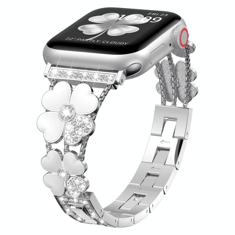 Για Apple Watch 4 44mm Μεταλλικό Μπρασελέ Διαμαντιών Petal (Μαύρο+Λευκό)