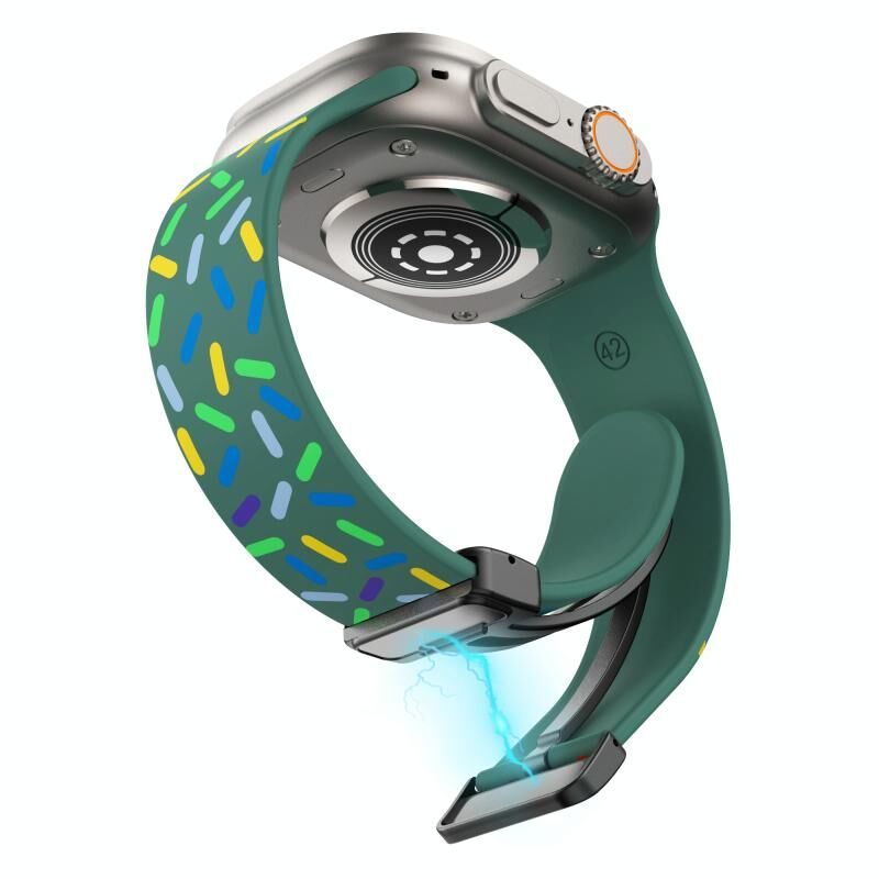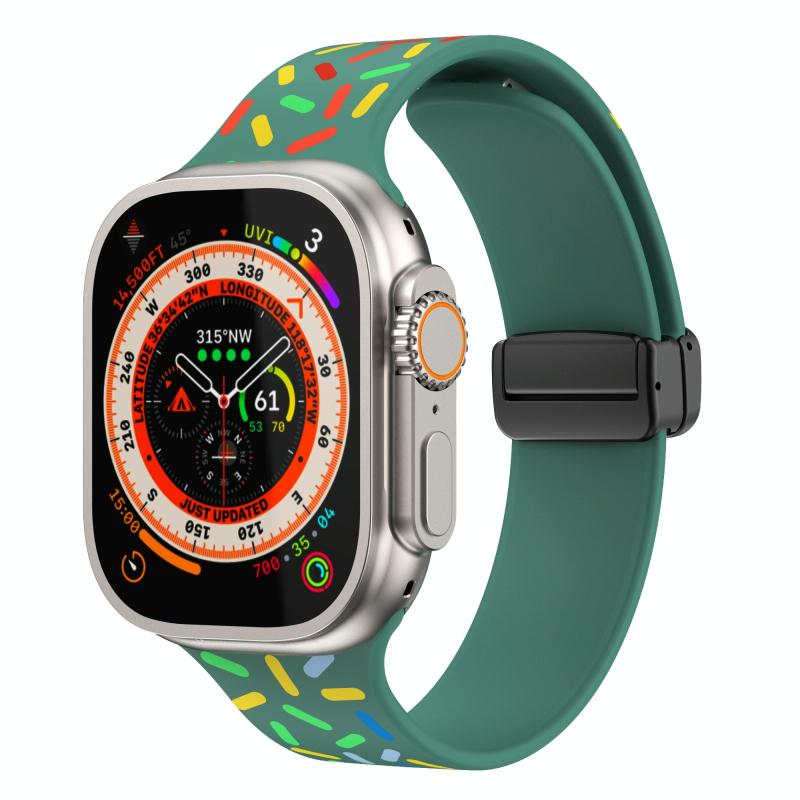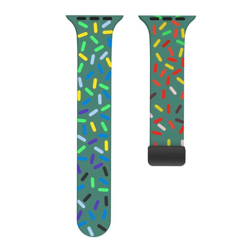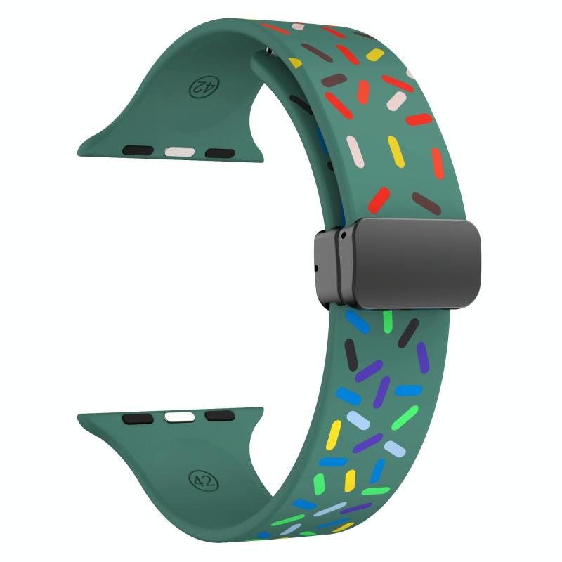 For Apple Watch 4 44mm Rainbow Dots Silicone Magnetic Black Buckle Watch Band(Green)