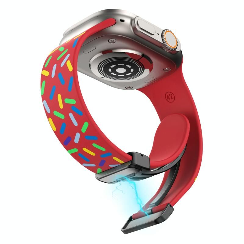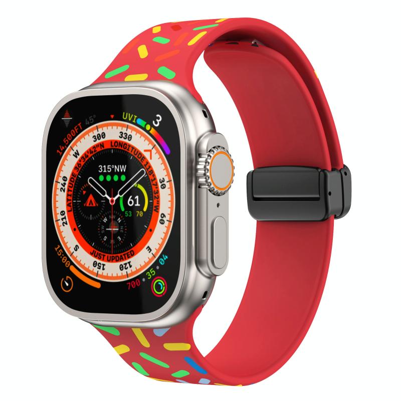 For Apple Watch 4 44mm Rainbow Dots Silicone Magnetic Black Buckle Watch Band(Red)