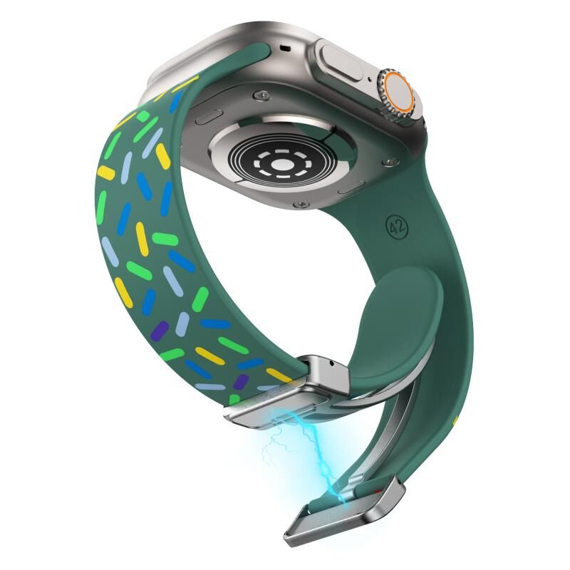 Για Apple Watch 4 44mm Λουράκι Σιλικόνης με Μαγνητικό Κούμπωμα Rainbow Dots (πράσινο)