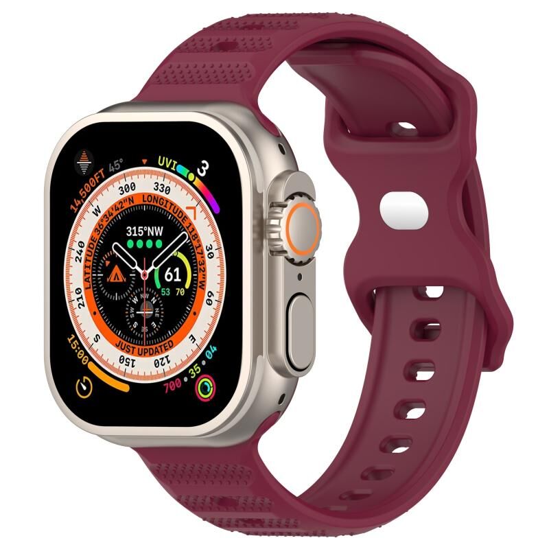 Για Apple Watch 4 44mm Λουρί Σιλικόνης με Απλή Αγκράφα και Υφή Βούλας (Κρασοκόκκινο)