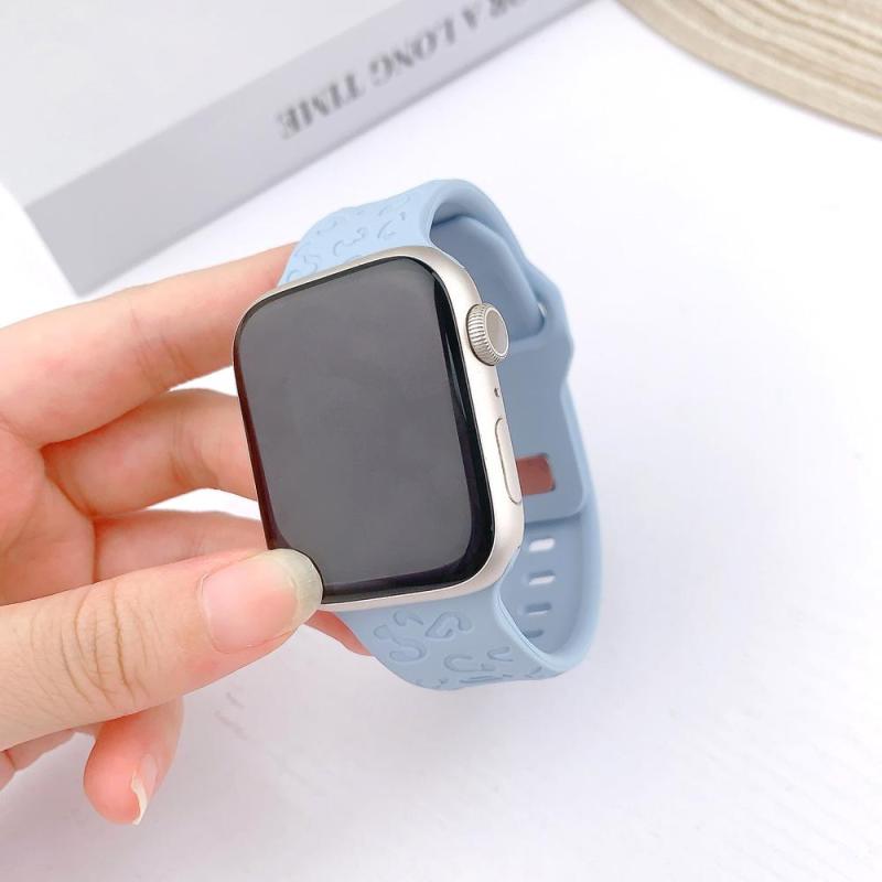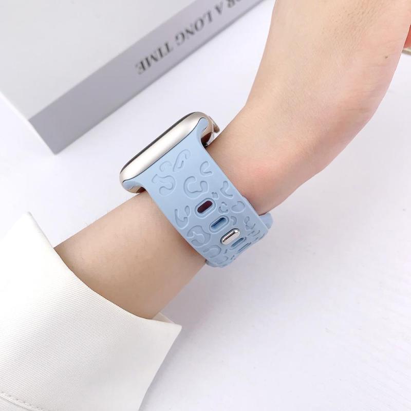 For Apple Watch 42mm / 41mm / 40mm / 38mm Buckle Concave Leopard Silicone Watch Band(Light Blue)