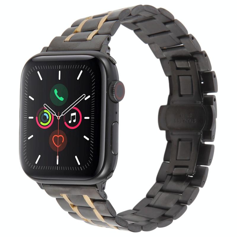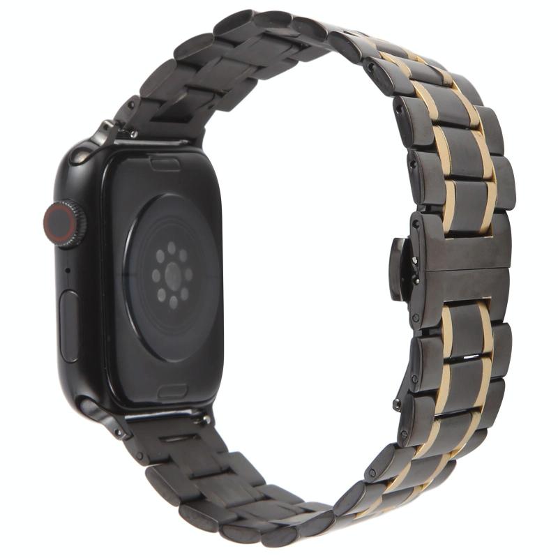 For Apple Watch 42mm / 41mm / 40mm / 38mm Butterfly Buckle New Five Beads Stainless Steel Watch Band(Black Gold)