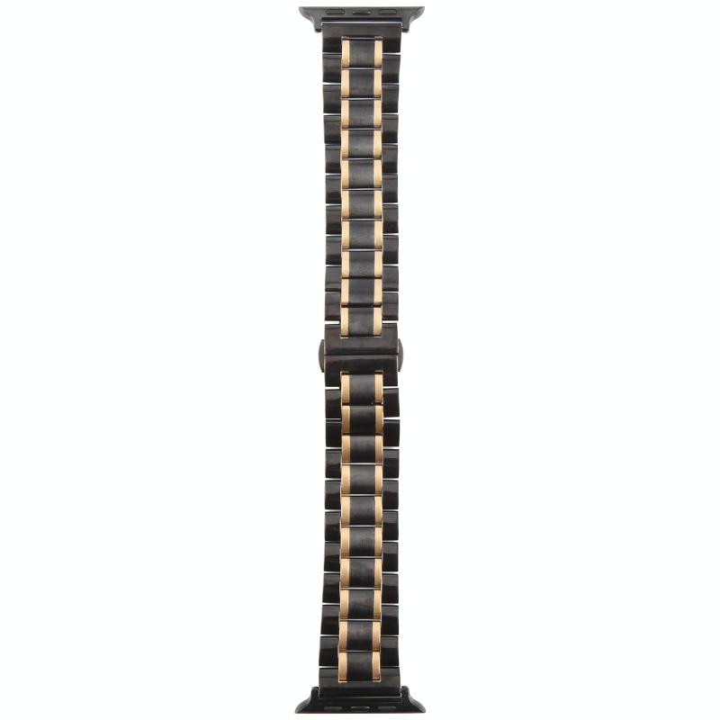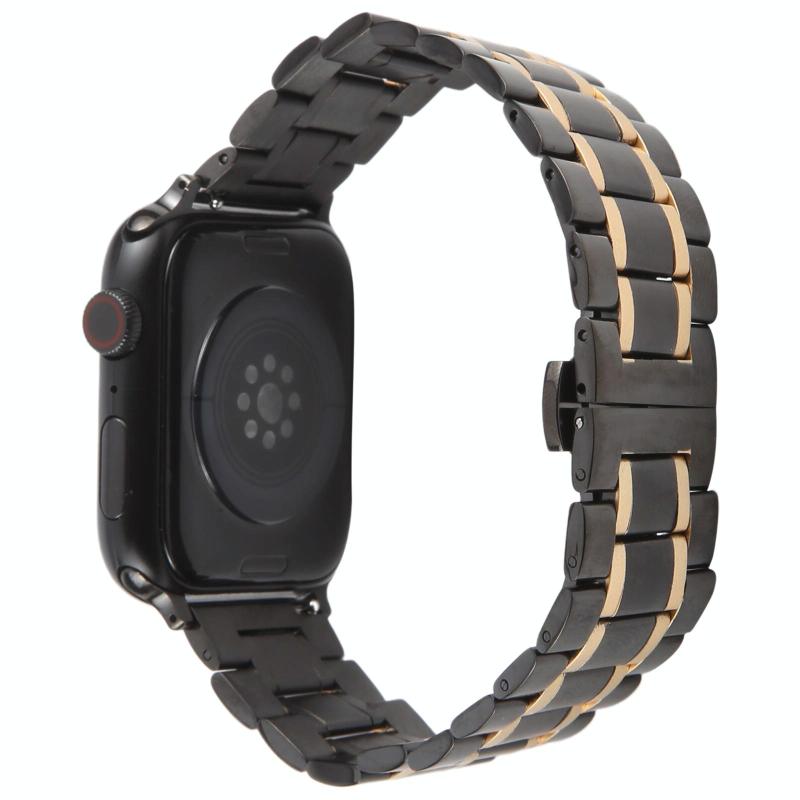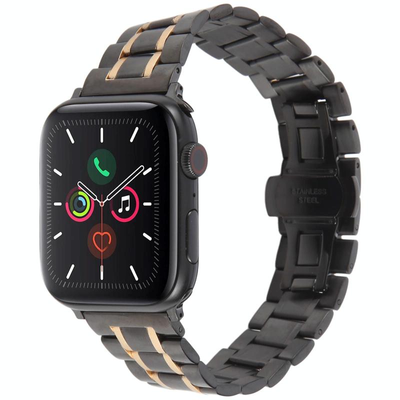 For Apple Watch 42mm / 41mm / 40mm / 38mm Butterfly Buckle New Five Beads Stainless Steel Watch Band(Black Rose Gold)