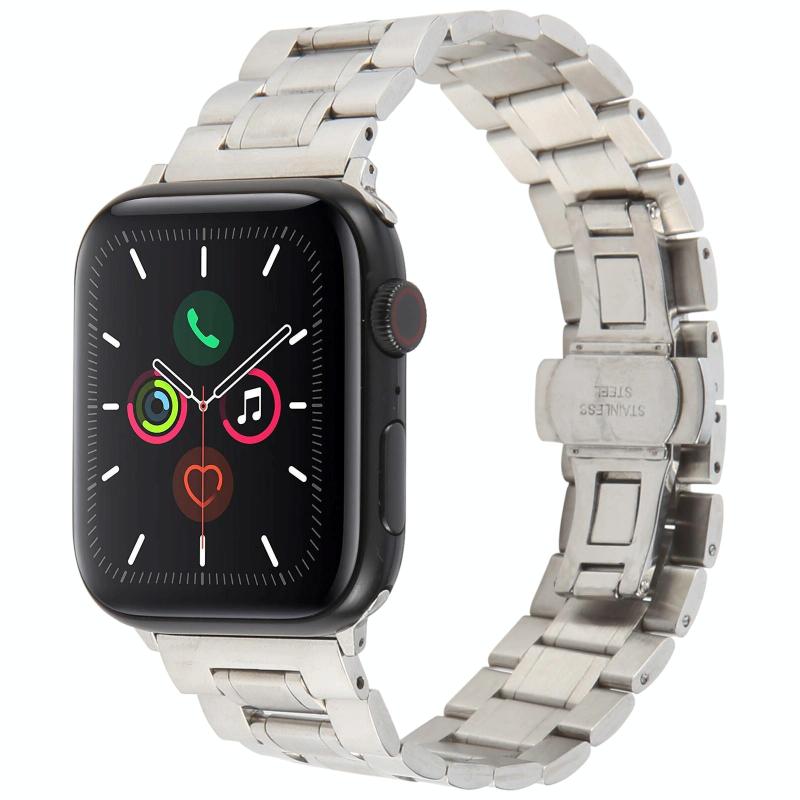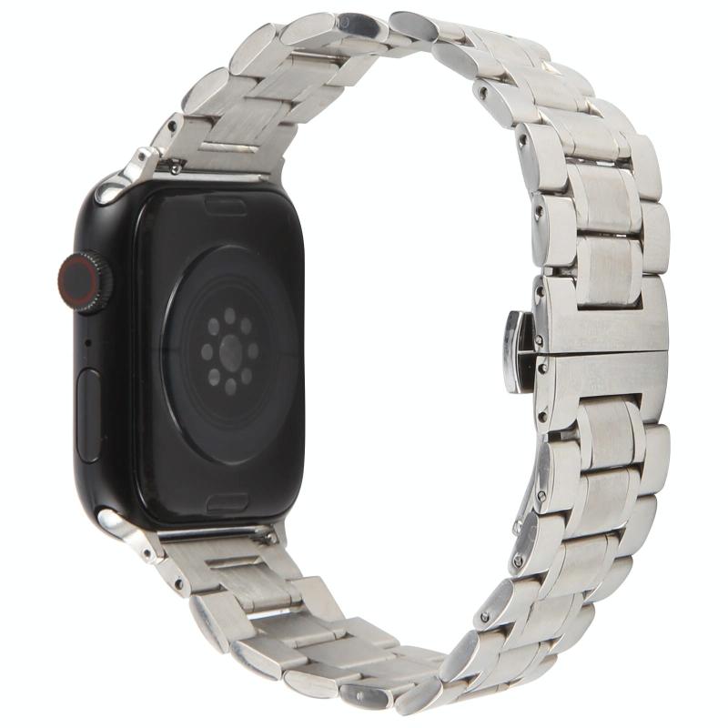 For Apple Watch 42mm / 41mm / 40mm / 38mm Butterfly Buckle New Five Beads Stainless Steel Watch Band(Silver)