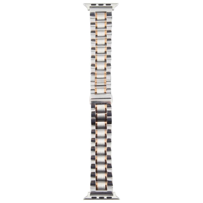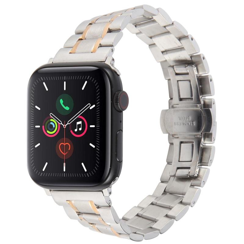 For Apple Watch 42mm / 41mm / 40mm / 38mm Butterfly Buckle New Five Beads Stainless Steel Watch Band(Silver Rose Gold)