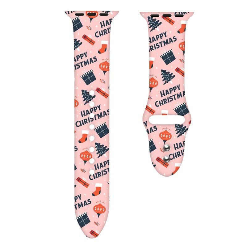 Λουράκι ρολογιού σιλικόνης με χριστουγεννιάτικο σχέδιο για Apple Watch 42mm / 41mm / 40mm / 38mm (Άγιος Βασίλης Κόκκινος)