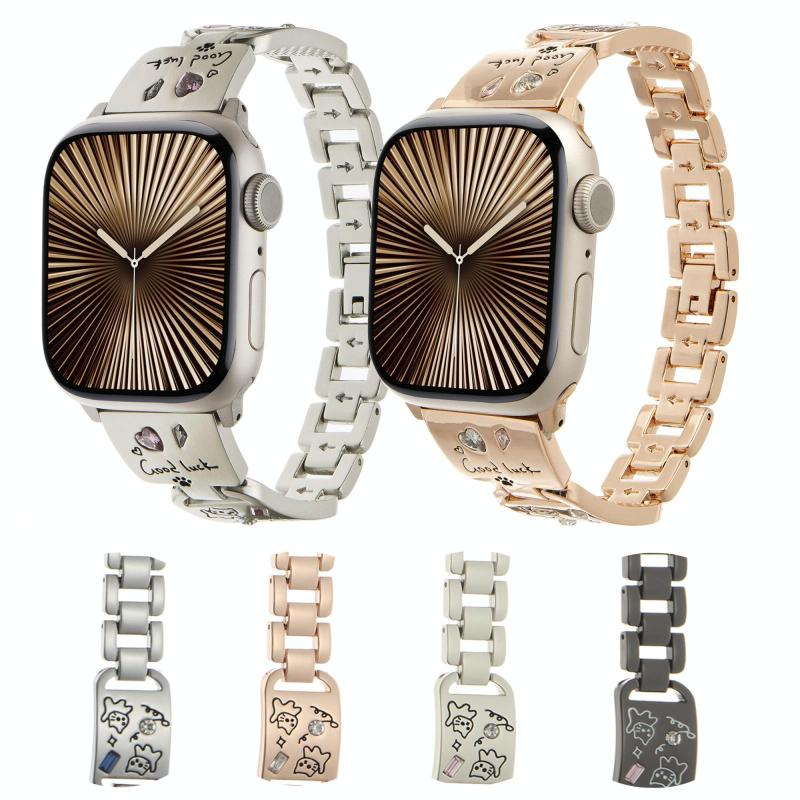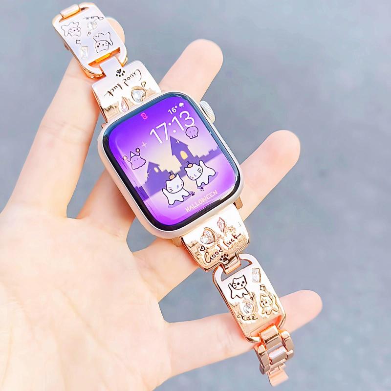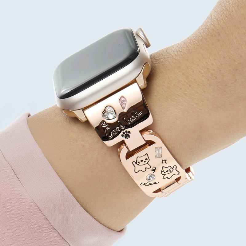 For Apple Watch 42mm / 41mm / 40mm / 38mm Colored Diamond Cat Stainless Steel Watch Band(Rose Gold)