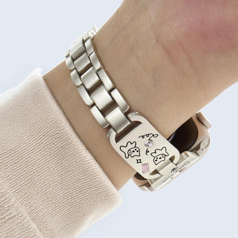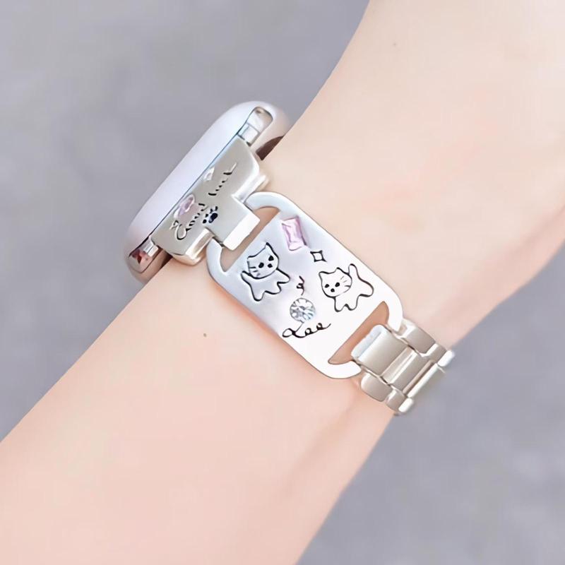 For Apple Watch 42mm / 41mm / 40mm / 38mm Colored Diamond Cat Stainless Steel Watch Band(Starlight)