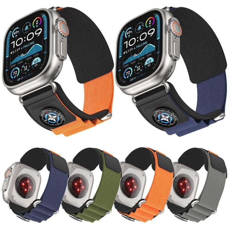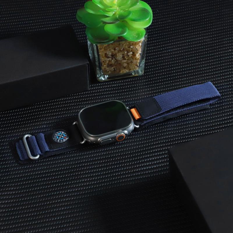 For Apple Watch 42mm / 41mm / 40mm / 38mm Compass Nylon Loop Watch Band(Black Blue)