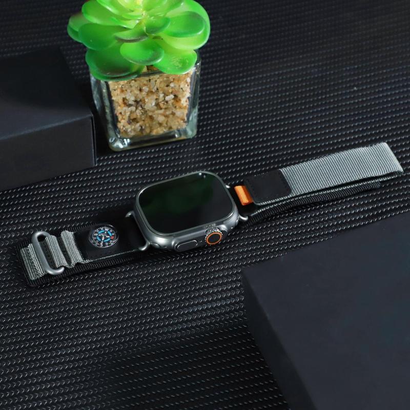 For Apple Watch 42mm / 41mm / 40mm / 38mm Compass Nylon Loop Watch Band(Black Grey)