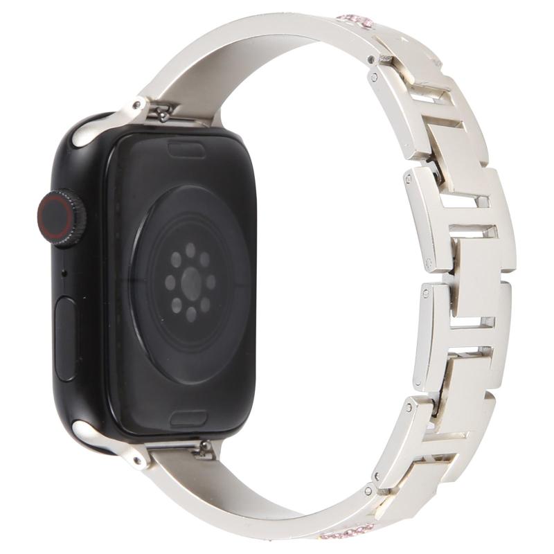For Apple Watch 42mm / 41mm / 40mm / 38mm Diamond Quick Release Chain Bracelet Metal Watch Band(Starlight)
